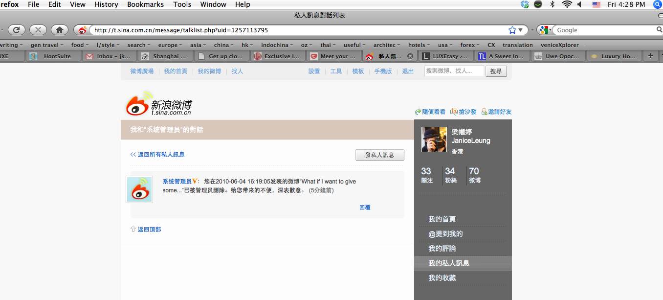 Soon after I tweeted, I got a direct message from 系统管理员: